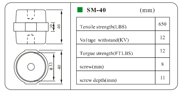 4. Bảng thông số kỹ thuật Sứ cách điện SM-40